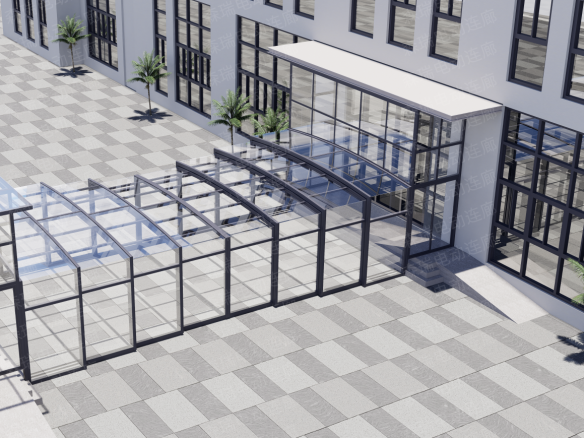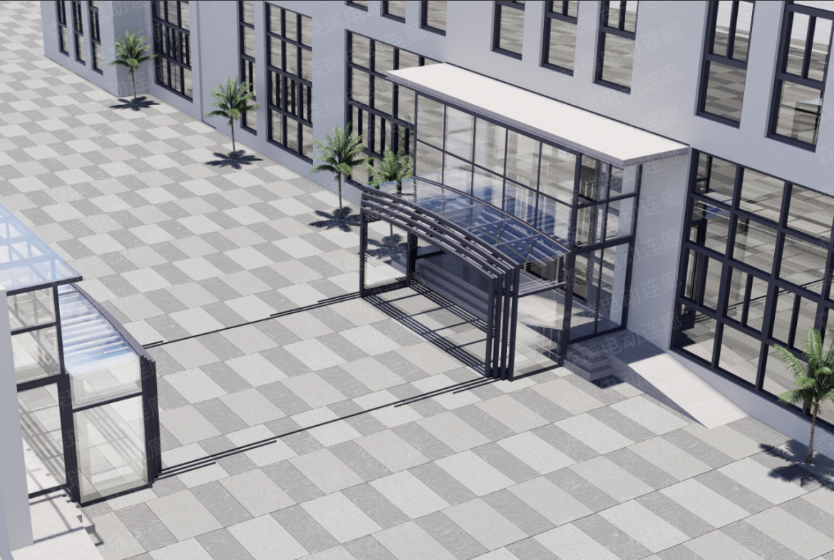 - 痛点:封闭式固定连廊空气流通差,易造成气溶胶堆积;夏季暴晒导致廊内温室效应严重。