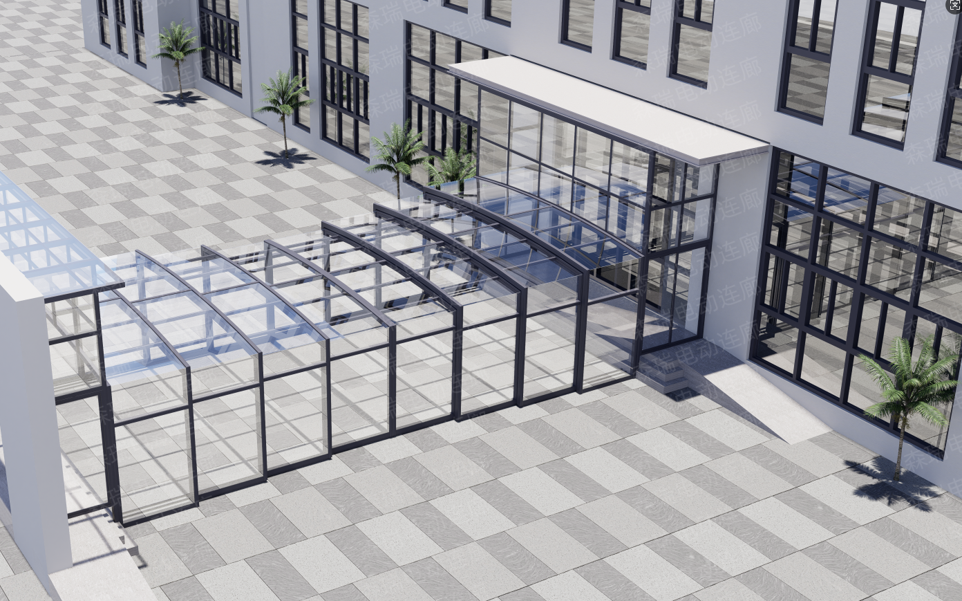 - 侧向防护(可选):配套电动防风卷帘或隐藏式平开窗,形成全封闭或半开放的灵活切换。