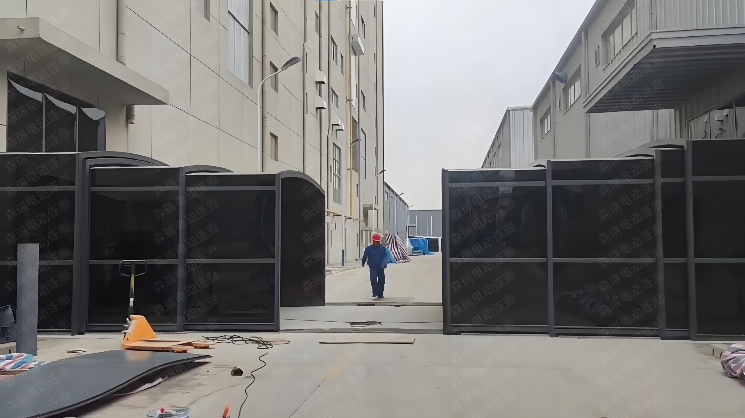 • 柔性交通切换: 针对厂区内货车穿行的需求,连廊采用高频率电机驱动。当有大型车辆通过或消防演习时,连廊可快速收缩至厂房墙侧,瞬间恢复路面全宽通行能力,解决了空间占用的矛盾。