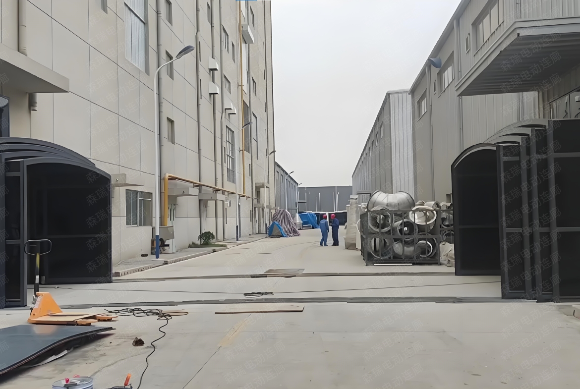 本项目通过加装定制化智能电动伸缩连廊,在保障物料“零污染”转运的同时,实现了厂区空间的动态管理。