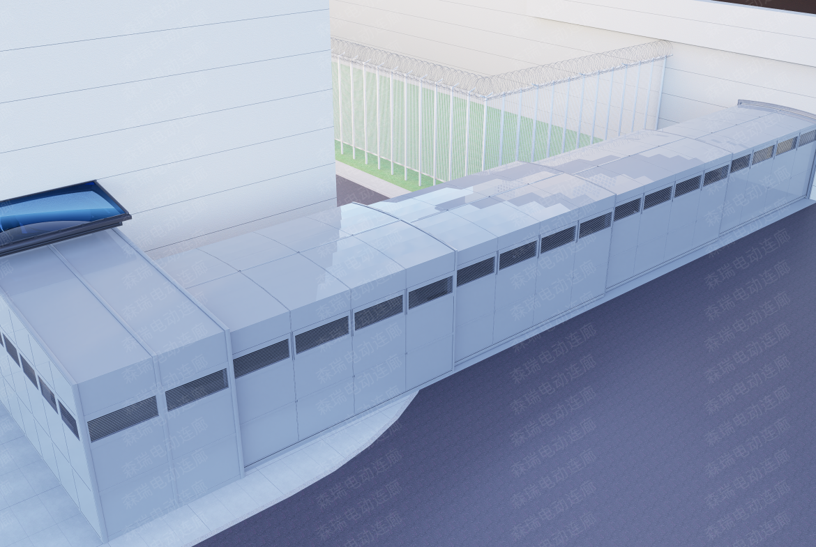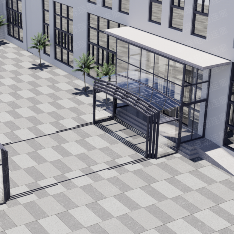 • 智能感应调节:集成雨感、风感传感器。监测到恶劣天气时,连廊自动闭合保护通道干燥;光线过强时,自动调节角度提供漫反射采光,优化监控画质。